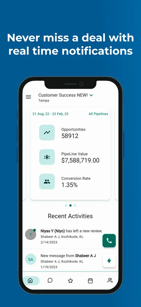 Deliver Real Time Notifications and responses instantly, ensuring prompt communication with customers, prospects, and your team.