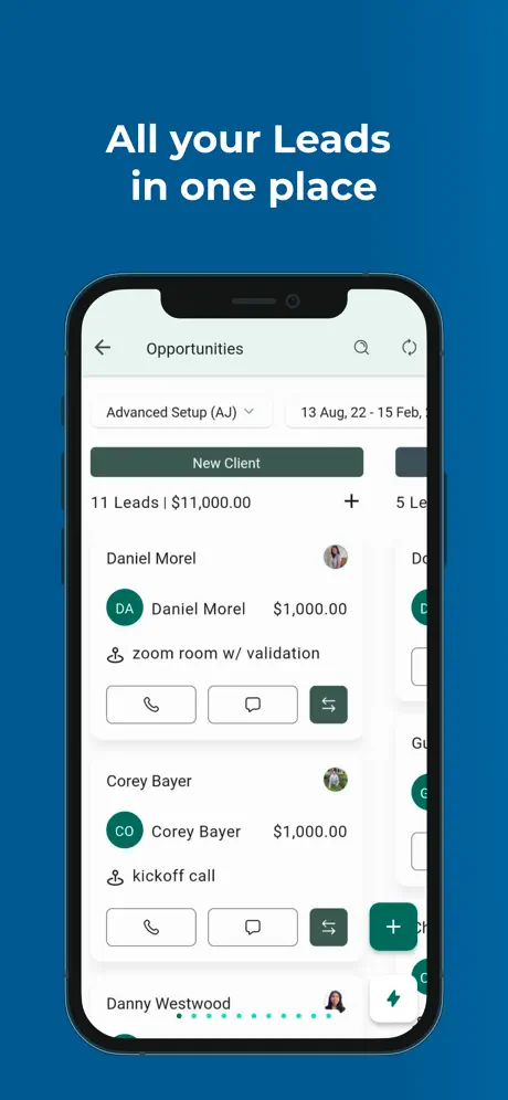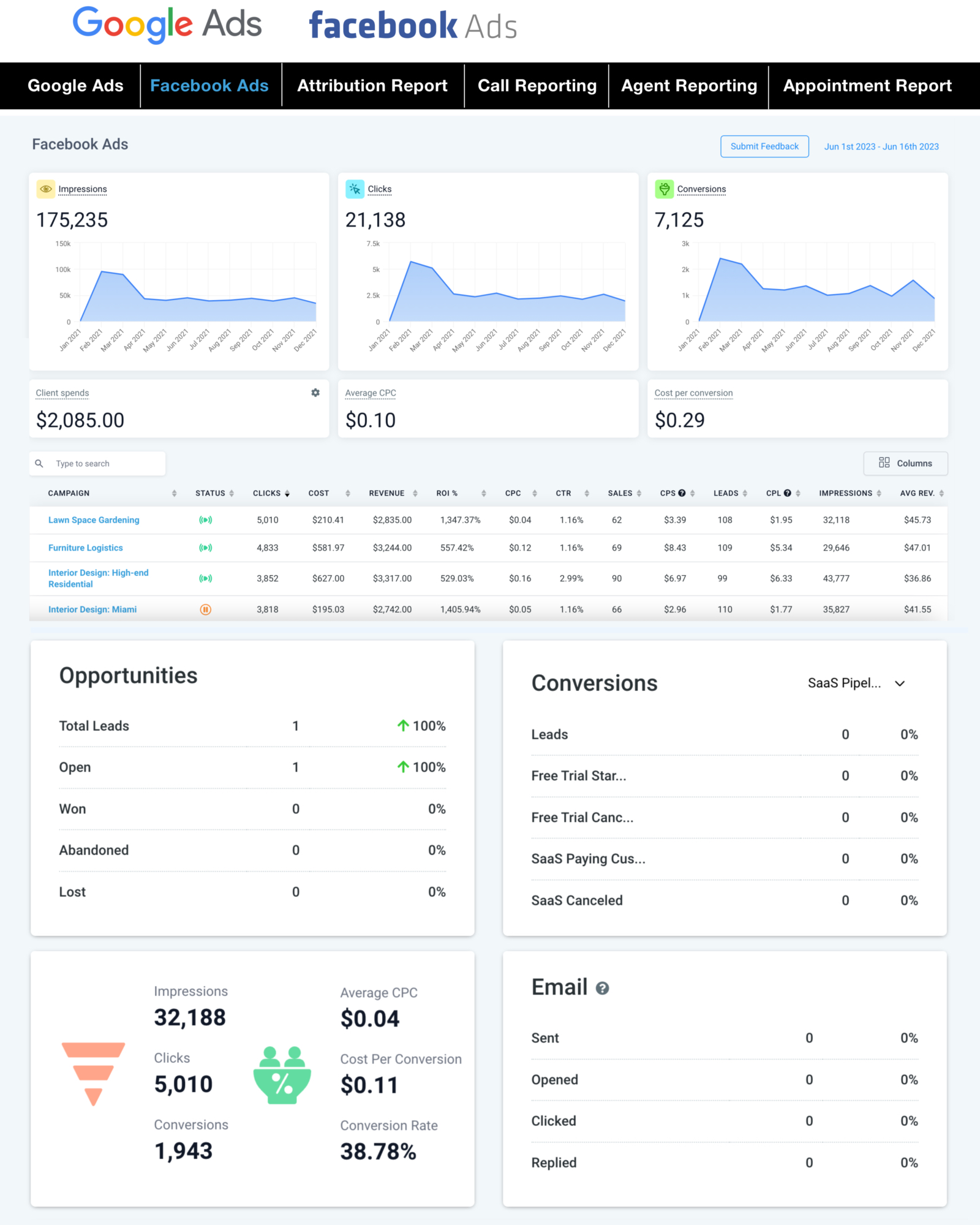 Save Time With 1 Central Dashboard for viewing all of your leads, contacts, calendars, conversations, opportunities, and appointments.