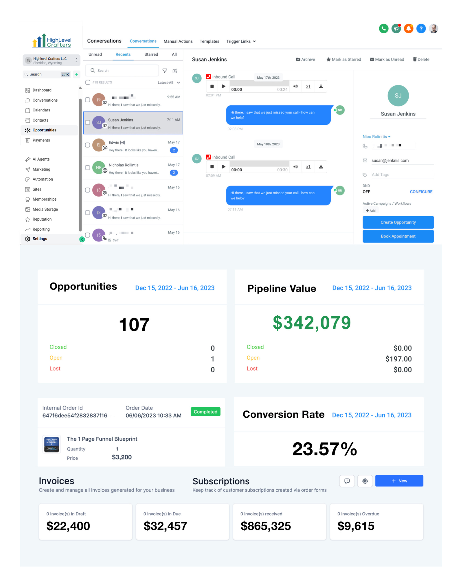 What makes Highlevel Crafters different is our fully integrated CRM. You can access, track, and manage your incoming leads, deal pipeline, opportunities, and client's in real time.