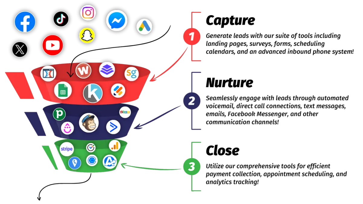 Capture: Turn online visitors into leads and prospects using our landing pages, funnels, surveys, forms, calendars, inbound phone system & more...
